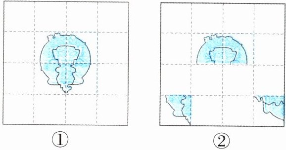 5. 将图②中左下角的卡片先向右平移1格,再向上平移1格;将图②中右下角的卡片先绕所在小方格的左下顶点沿逆时针方向旋转90°,再向上平移1格。