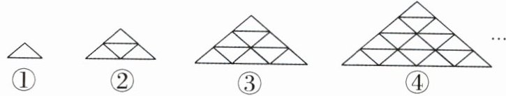 10 45 ㉗ [点拨]从第①堆到第④堆,空白三角形的个数规律是0、1、1+2、1+2+3,所以第⑤堆中空白三角形的个数是1+2+3+4=10(个),第⑩堆中空白三角形的个数是1+2+3+4+5+6+7+8+9=45(个)。一般地,第n堆中空白三角形的个数是$\frac{n×(n - 1)}{2}$个。因为$\frac{n×(n - 1)}{2}=351$,所以n×(n - 1)就等于351×2=702。我们从1开始试:1×2=2,不符合;2×3=6,不符合;3×4=12,不符合;…;26×27=702,符合。所以,有351个空白三角形的是第㉗堆。