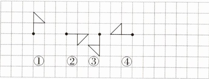 观察图形可发现:图①先向右平移3格,再以小圆点为旋转中心,顺时针旋转90°得到图②,图②到图③,图③到图④的运动也是如此。