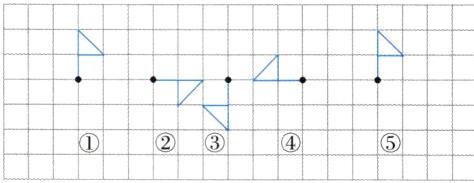 1. 图①→图②→图③→图④,是怎样变化的?(观察、寻找并描述物体运动的规律)请根据你发现的规律画出图⑤。