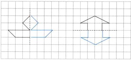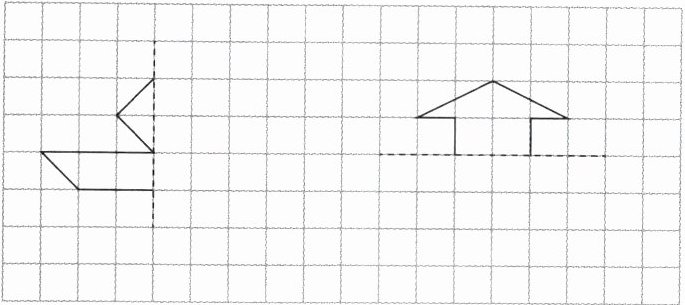 1. 将格子图中的图形先向右平移8格,再向下平移4格。分别画出每次平移后的图形。