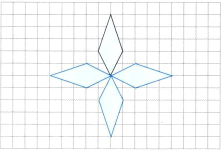 5. 把下面方格纸中的图形,利用旋转设计成一朵花。(要求:四片花瓣)