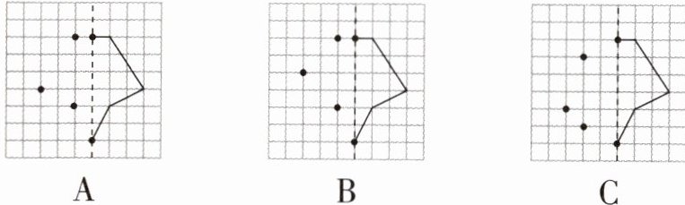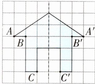A' 3 B' [点拨]观察题图,图形是一个轴对称图形,对应点到对称轴的距离相等,点A和点A'到对称轴的距离都是3格,点B和点B'到对称轴的距离都是2格,它们分别关于对称轴对称。