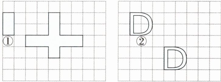 ①右 2 ②右 3 下 1(或下 1 右 3)[点拨]图形②先向右平移3格,再向下平移1格,可以拼成字母B,也可以先向下平移1格,再向右平移3格,同样可以拼成字母B。