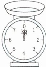 (5) 如图,妈妈要称 $ 2 kg $ 面粉做点心,她先将一袋面粉放到台秤上称,这时指针顺时针旋转了 $ 180° $,这袋面粉重(
