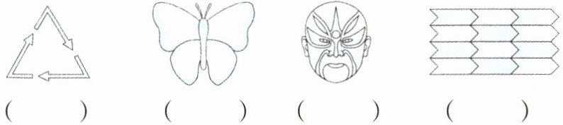 (1) 下面图形中是轴对称图形的在括号里画“○”,可以通过平移得到的在括号里画“△”,可以通过旋转得到的在括号里画“□”。