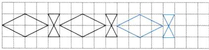 1. 下面是梦梦设计的“二方连续图案”的花边,想一想梦梦是如何设计的,接着画一画。