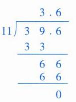 39.6÷11=3.6