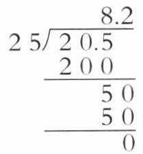 2. 下面是龙龙用竖式计算$20.5÷ 25$的过程,老师说他算得不对。龙龙错在( ),请你改正过来。
