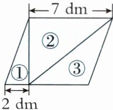 8. 下图为一个平行四边形,已知图形②的面积比图形①的面积大$ 15 dm^2,$求平行四边形的面积。