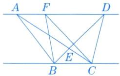 【点拨】根据平行线间的距离处处相等,三角形 ABC 和三角形 DBC 的底是 BC,高相等,因此面积相等;三角形 ABD 和三角形 ACD 的底是 AD,高相等,因此面积相等;三角形 ABC 和三角形 DBC 都减去公共的部分三角形 BEC,剩余三角形 ABE 和剩余三角形 DCE 的面积也相等。画与三角形 ABC 面积相等的三角形,在 AD 所在的直线上任取一点 F(除点 A、D 外),连接 F 与 B、C,得到三角形 FBC。