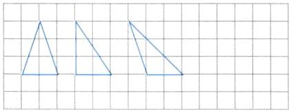 【点拨】在方格纸上画出 3 个不同形状的三角形占相同格数的底边,再画出占相同格数的高即可。等底等高的三角形面积相等,答案不唯一。