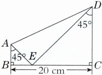 【点拨】由题图可知,三角形ABE和三角形CDE都是等腰直角三角形,所以AB = BE,CD = CE,所以直角梯形的上、下底之和等于直角梯形的高,运用梯形面积公式求解即可。