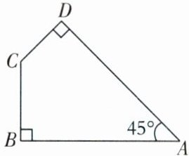 6. 成都市邛崃市期末 如图,在四边形 $ABCD$ 中,$AB = 9\ cm$,$CD = 3\ cm$,$\angle A = 45^{\circ}$,$\angle B$ 和 $\angle D$ 都是直角。四边形 $ABCD$ 的面积是多少平方厘米?