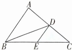 4. 如下图,三角形 $ABC$ 中 $AD$ 与 $DC$ 的长度相等,$BE$ 与 $EC$ 的长度相等。已知涂色部分的面积是 $4.5\ dm^{2}$,则三角形 $ABC$ 的面积是多少平方分米?