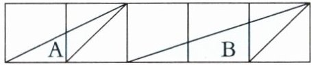 (5) 如下图,在边长相等的五个正方形中,画了两个三角形。若三角形 $A$ 的面积是 $45\mathrm{cm}^2$,则三角形 $B$ 的面积是(