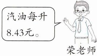 [点拨]已知汽车平均每千米耗油0.06L,汽油每升8.43元,要求荣老师每天上下班的油费,还需要知道他每天上下班的总路程。荣老师家距离学校约16km,每天上下班往返一次,则每天上下班的总路程约是16×2=32(km)。