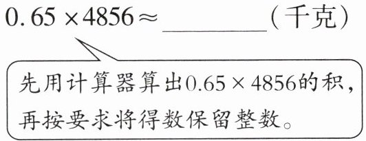 1. 新考向地域文化 赞皇大枣是河北省石家庄市赞皇县特产,以果肉厚实著称,常用于加工枣泥、枣干等食品。每千克河北赞皇大枣可以制成0.65千克枣泥。某食品加工厂收购了4856千克赞皇大枣,大约能生产多少千克枣泥?(得数保留整数)