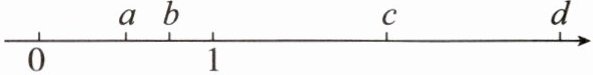 B 【点拨】观察数线估计字母对应数的大小,则$a\approx \frac{1}{2}$,$b\approx \frac{3}{4}$,$c\approx 2$,$d\approx 3$,所以a和c可能互为倒数。