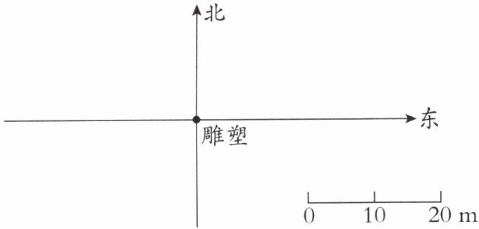 4. 教学楼在雕塑正北方向 20 m 处,升旗台在雕塑正南方向 30 m 处,操场(中心)在雕塑北偏西$60^{\circ }$方向 40 m 处,根据描述画图。