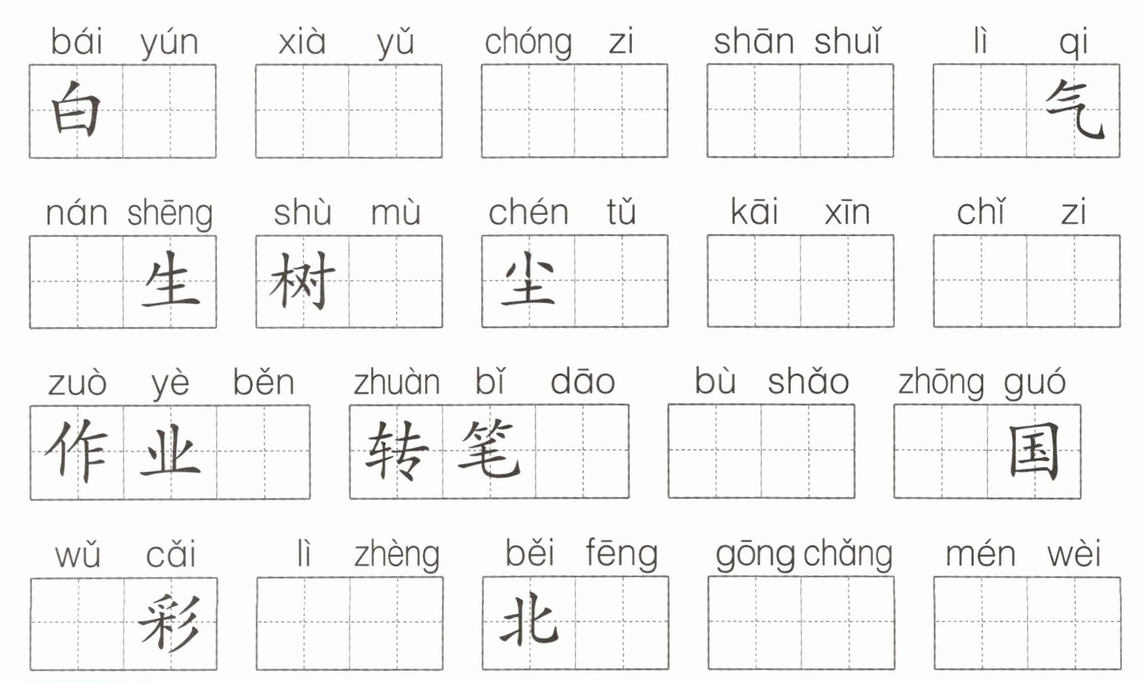 贝壳(pèi bèi) 上课(kè kuǒ) 早上(zǎo zhǎo)