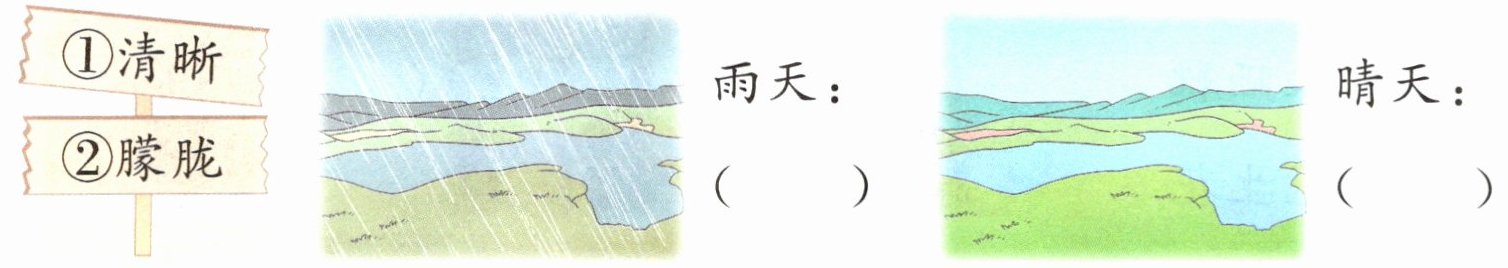(2) 在不同的天气,日月潭的景色有何不同?(填序号)