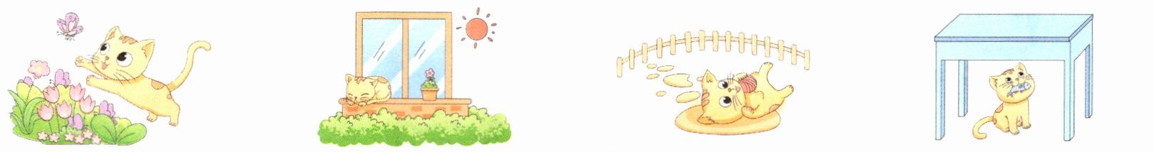 (2)捉蝴蝶 晒太阳 玩毛线球 吃鱼