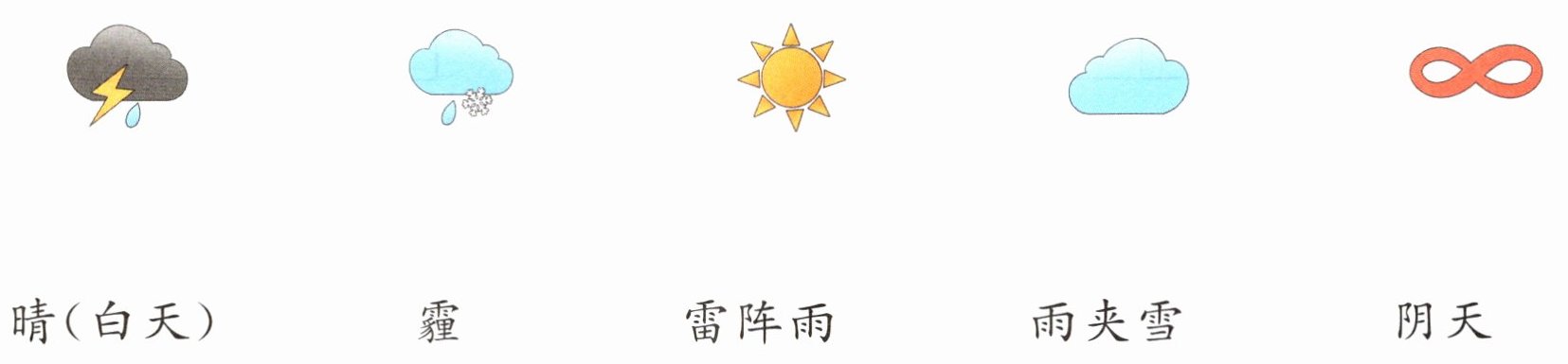 1. 下面是部分天气图形符号,一起来认一认吧!