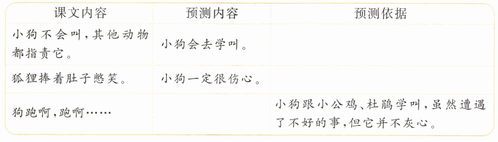 五 新思维 照样子,根据提示预测课文中小狗的另外两种结局。考点10