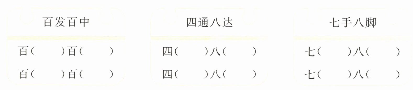 四、才才根据成语的特点分类整理了如下成语卡,你能填一填类似的成语吗?