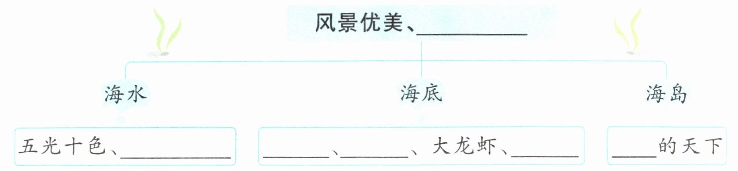 )的珊瑚 ( )的海水 ( )的海底