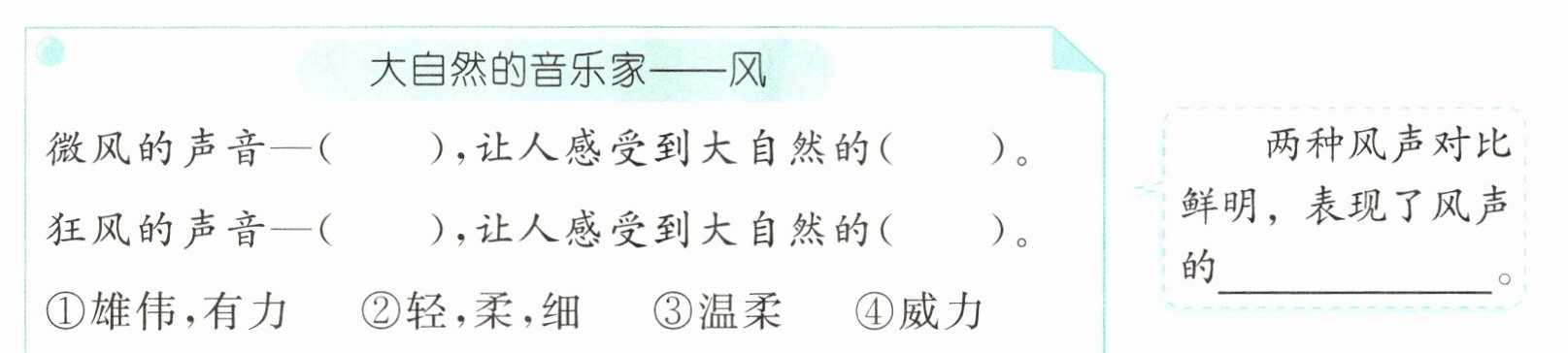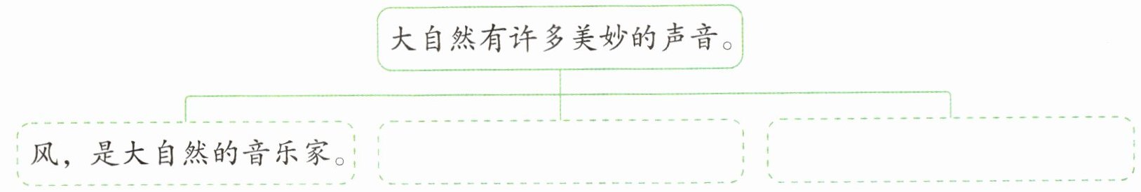五 (新思维)课文写了大自然的哪些声音?照样子找出关键句,完成思维导图。