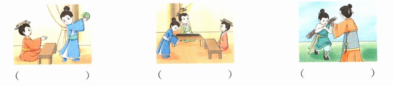 六、课文中讲述了三个故事,请根据图片提示用四字词语给故事命名。