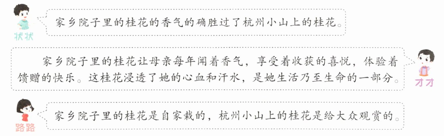 2. 可是母亲说:“这里的桂花再香,也比不上家乡院子里的桂花。”