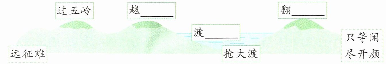 ☆照样子,补全诗中描写的红军长征途中的五件事。