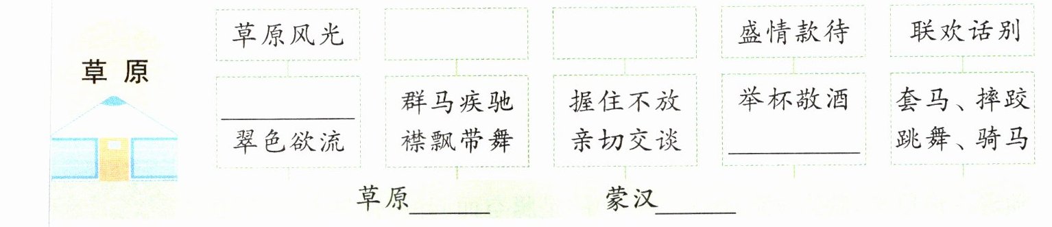 1. 选段按照______顺序描写了草原的景物。仔细阅读选段,根据提示补全下图。