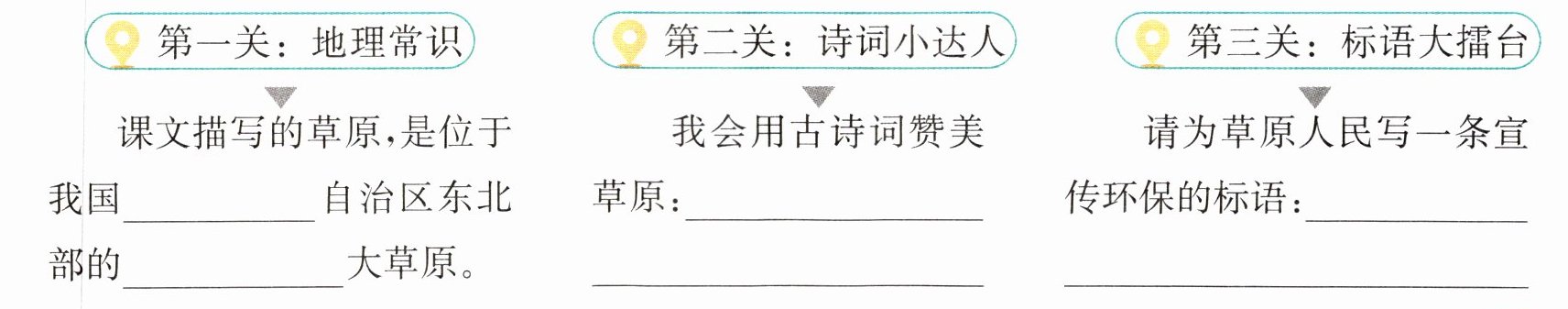 七 新情境 六(1)班正在开展以“美丽的草原”为主题的知识闯关活动,请你来参加吧!