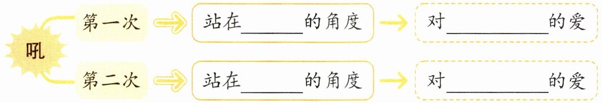 。3. 文中写了老汉的两次“吼”,这两次“吼”分别站在什么角度? 表达的情感有什么不同? 填一填。