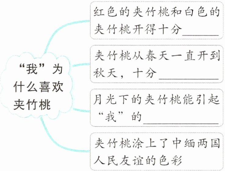 3 作者喜欢夹竹桃的原因是什么?请根据文章内容完成下面的思维导图。