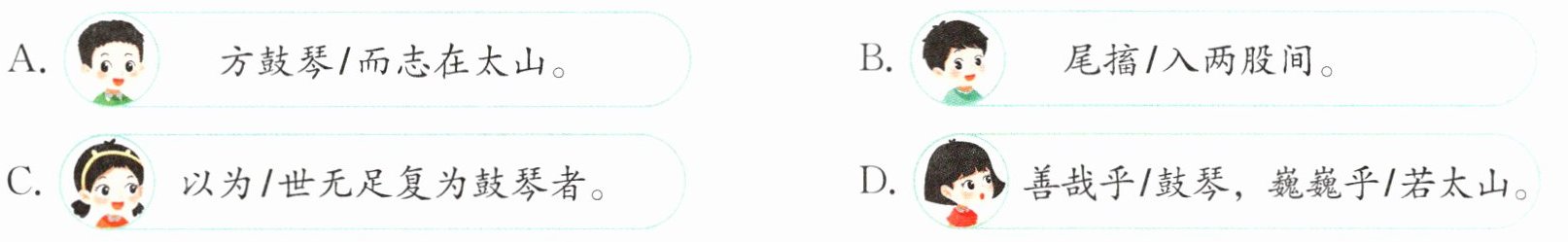 四 新情境 同学们正在进行配乐朗诵古文的排练,朗读节奏有误的是(