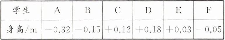 14. 某景区规定:身高在 1.2 m 至 1.5 m 的儿童需要购买儿童票,其售价是成人票售价的一半。6 名学生要随父母去该景区游玩,若以 1.5 m 为基准,超过的部分记作正数,不足的部分记作负数,6 名学生的身高记录如下表: