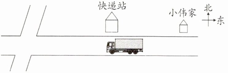 (1)以快递站为原点,以向东的方向为正方向,用 1 个单位长度代表 1 km 画一条数轴,并在数轴上标出小伟家的位置;