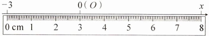 11. 如图,将一刻度尺放在数轴上(数轴的单位长度是 1 cm),刻度尺上的“0 cm”和“8 cm”分别对应数轴上的$-3和x$,那么$x$的值为
