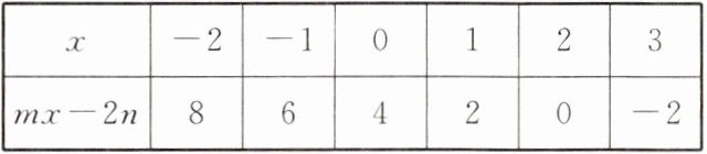12. 代数式 $ mx - 2n $ 的值随 $ x $ 取值的变化而变化,如表是当 $ x $ 取不同值时代数式 $ mx - 2n $ 对应的值,则关于 $ x $ 的方程 $ -mx + 2n = 2 $ 的解是(