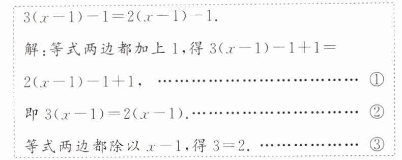 等式两边都加上$1$,得$3(x - 1)-1 + 1=2(x - 1)-1 + 1$,即$3(x - 1)=2(x - 1)$。