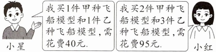 7. [2025·祁阳期末]北京时间 $2024$ 年 $4$ 月 $26$ 日 $05$ 时 $04$ 分,神舟十八号航天员乘组顺利进驻中国空间站与神舟十七号航天员乘组太空会师。小星和小红都是航天爱好者,他们计划购买甲、乙两种飞船模型收藏,下面是两位同学的对话: