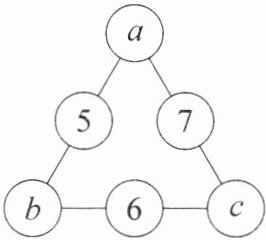 7. 【教材$P138习题T2$变式题】如图,每条边上的三个数之和都等于$16$,那么$a$,$b$,$c$这三个数分别为