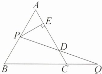 3. [2025·岳阳市岳阳县期末改编]如图,过边长为 $ 2 $ 的等边三角形 $ ABC $ 的边 $ AB $ 上一点 $ P $ 作 $ PE \perp AC $ 于点 $ E $,$ Q $ 为 $ BC $ 的延长线上一点,当 $ AP = CQ $ 时,连接 $ PQ $ 交 $ AC $ 于点 $ D $,求 $ DE $ 的长。