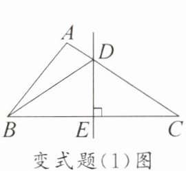 (1) 如图,在 $ \triangle ABC $ 中,$ DE $ 是 $ BC $ 的垂直平分线。若 $ AB = 5 $,$ AC = 8 $,则 $ \triangle ABD $ 的周长是______。