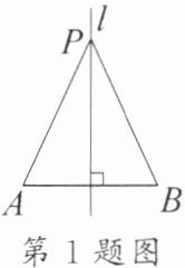 1. 如图,已知直线 $ l $ 垂直平分线段 $ AB $,$ P $ 是 $ l $ 上一点,若 $ PA = 5 $,则 $ PB $ 的长(